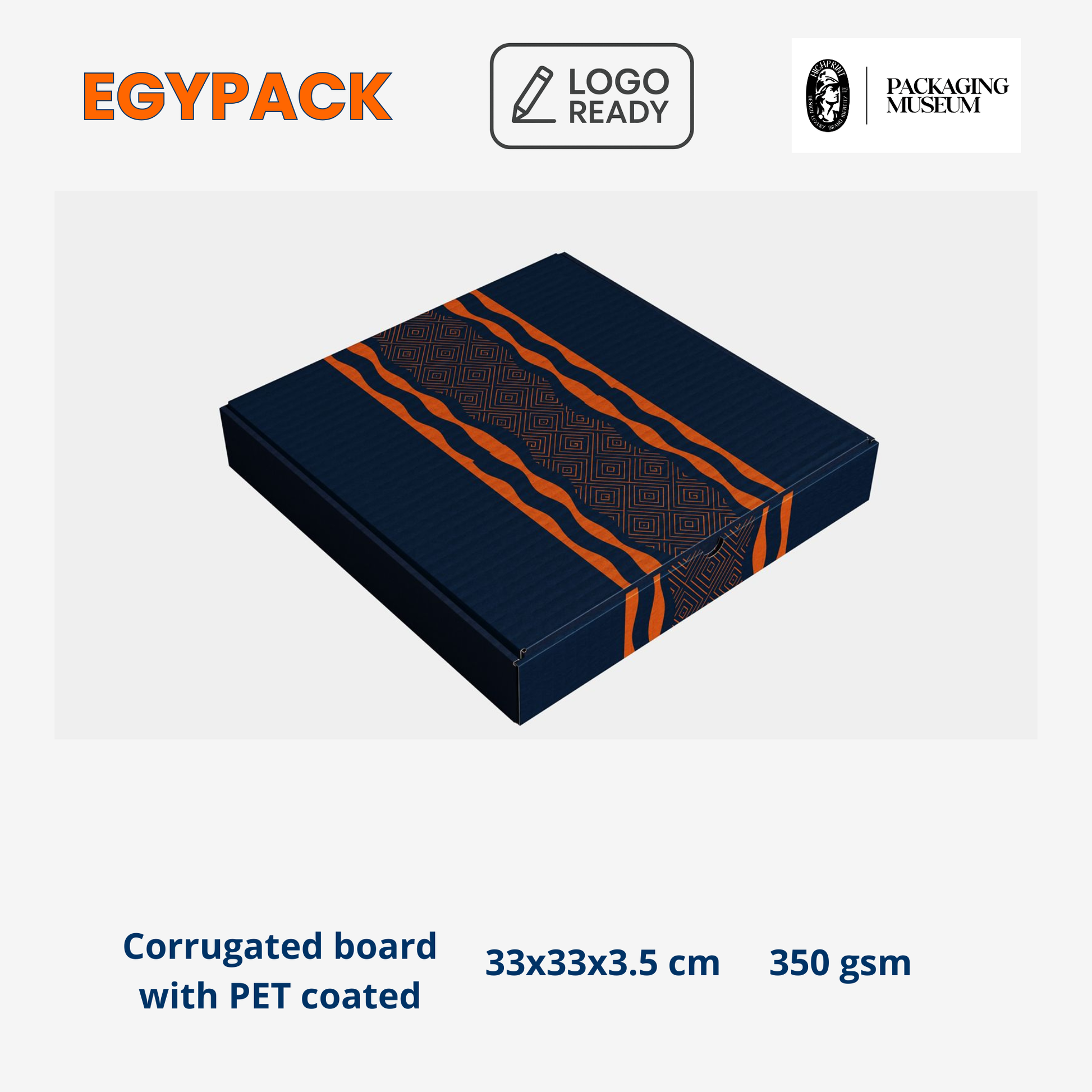 PREMIUM PRINTED WHITE KRAFT PIZZA BOX – Metalized Interior PE Coated – 350gsm – 33 × 33 × 3,5 cm – Pack of 50 pcs
